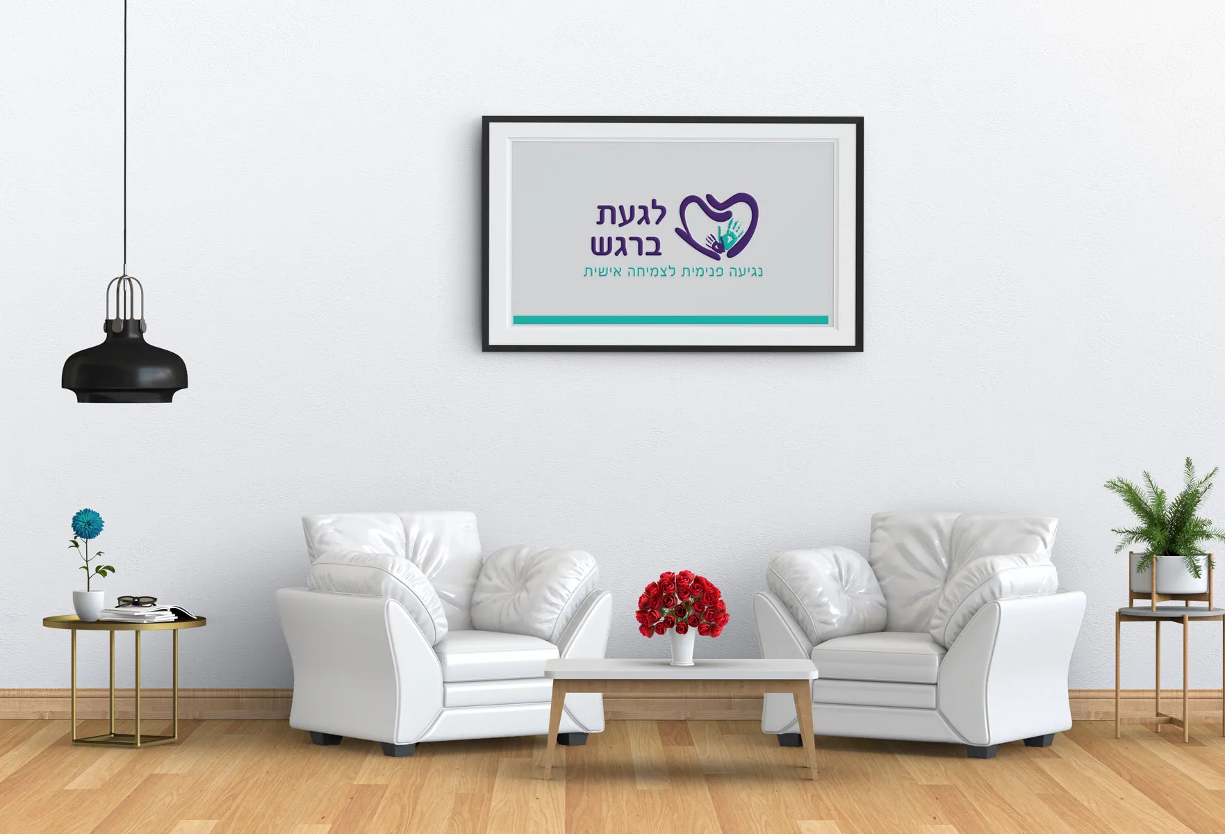 הלב שבמרכז הלוגו בנוי מהאותיות ל ו-ב – האותיות הראשונות של לגעת ברגש,